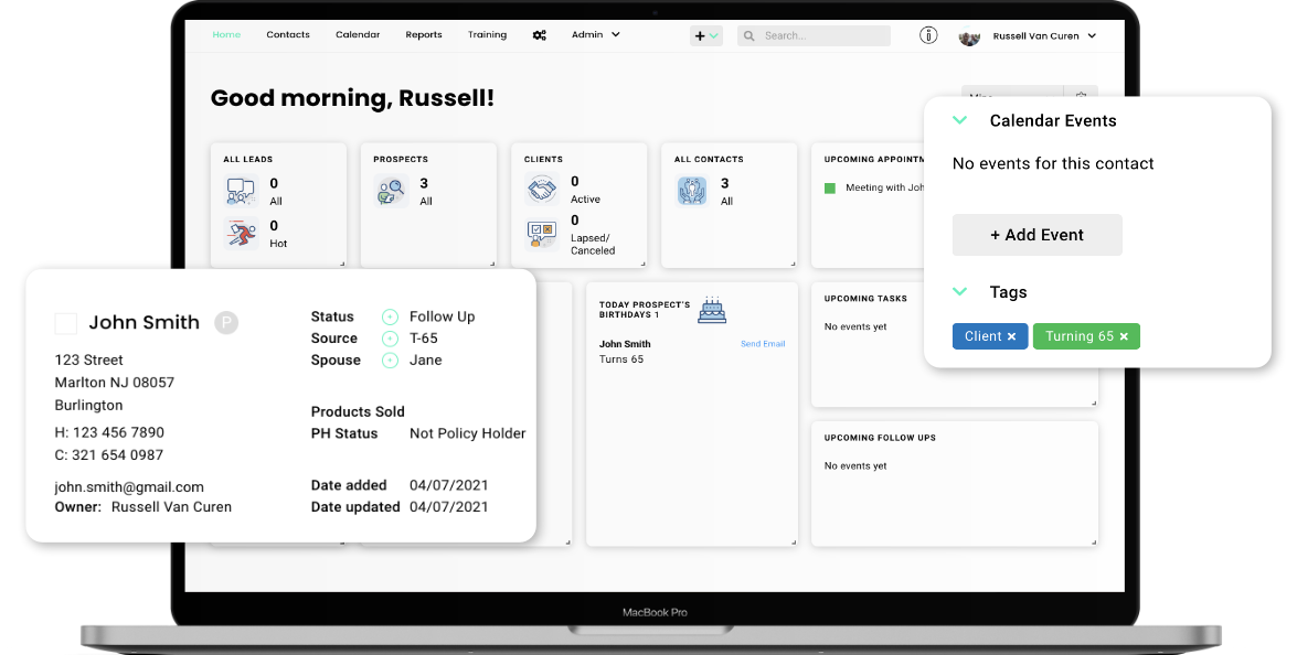 Our Agent Marketing System lets you initiate contacts — and keeps you in touch — with prospective and current clients. This is an active, dynamic communications system built for today’s sales environment. This is an agent system focused on what you need to be able to meet with more prospects.